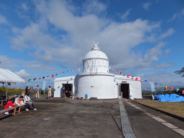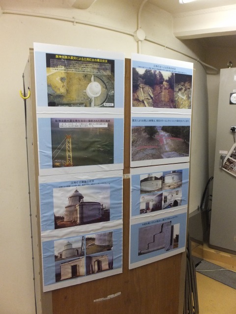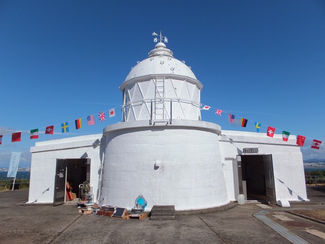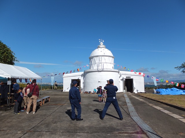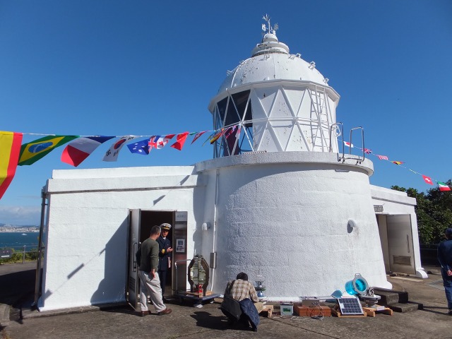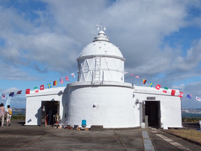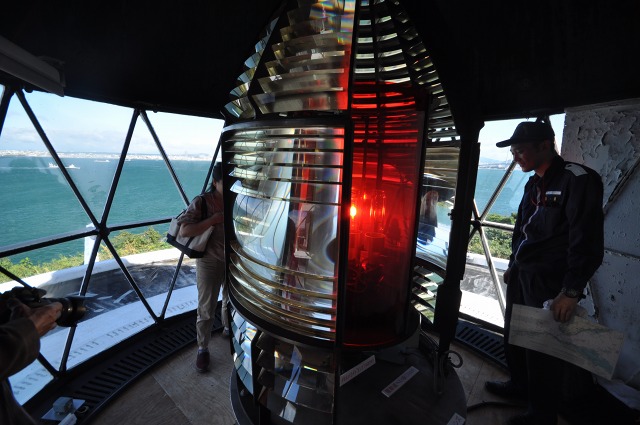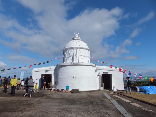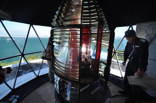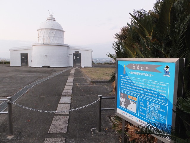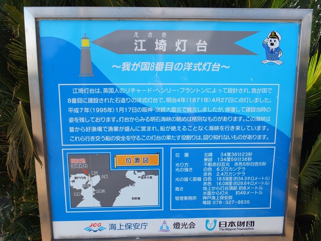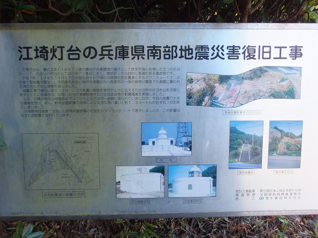 兵庫県 淡路市にある灯台です。 1871年(明治4年)4月初点、御影石造りの灯台です。 レンズは第3等不動フレネルレンズ、不動白赤互光 白5秒赤5秒、光度 白6万2千・赤2万4千カンデラ、 光達距離 白光18.5海里(約34.3km)・赤光16海里(約29.6km)、 塔高8.27m、灯火標高48.5mです。 保存灯台 Aランク、近代化産業遺産となっています。 1867年(慶応3年)に幕府が英国と結んだ「大坂条約」で建設が定められた5灯台(江埼、六連島、部埼、友ヶ島、和田岬) のひとつです。 そのうちで最初に完成した灯台で、「日本の灯台の父」である英国人 ブラントンが設計した、日本の西洋灯台では8番目の 灯台です。 彼の設計した灯台は、扇形の平屋付属舎の上に円筒型で鉄製の半球状のドーム屋根を載せた構造が多く、 通称「ブラントン灯台」と呼ばれています。この灯台も例に漏れず上記の形となっています。 任期約8年の間に全国で26灯台などの建設に携わっています。 また、灯台の他に日本初の電信架設や西洋式の舗装技術の導入、日本最初の鉄道建設・大阪港と新潟港の築港に関しての 意見書の提出、横浜公園の設計など開国直後の日本で実施された多くの土木事業に関わっています。 1871年(明治4年) 光源が石油ランプにて初点灯。 1933年(昭和8年) 電化される。 1981年(昭和51年) 自動化され無人化。 1995年(平成7年) 阪神・淡路大震災で大きな被害を受ける。 震災では震源である「野島断層」の北端直上に位置していた為、倒壊は免れましたが揺れにより壁がズレています。 灯台にいたる階段も断層によりズレが生じており、現在でもその跡が分かるように保存されています。 灯台目前の明石海峡を跨ぐ、世界最長の吊り橋である「明石海峡大橋」が完成間近に地震に見舞われ、断層のズレにより 全長が1m伸びた事が結構知られています。 江埼灯台の背後の山には「大阪湾海上交通センター(大阪マーチス)」があります。 センターでは海上交通の航行管制を行っており、全国に7箇所設置(東京湾・伊勢湾・名古屋港と下記4箇所)されています。 そのうち4箇所(大阪湾・備讃瀬戸・来島・関門海峡)が瀬戸内海周辺に設置されています。 瀬戸内海には灯台も多数建設されており、過去より現在に至るまで重要な航路であるという事を物語っています。 江埼灯台では、毎年定期的に一般公開を行っており灯室内部も公開されます。 今回もそれに合わせて行きました。なかなかお目にかかれない物が見れるので是非どうぞ。 |