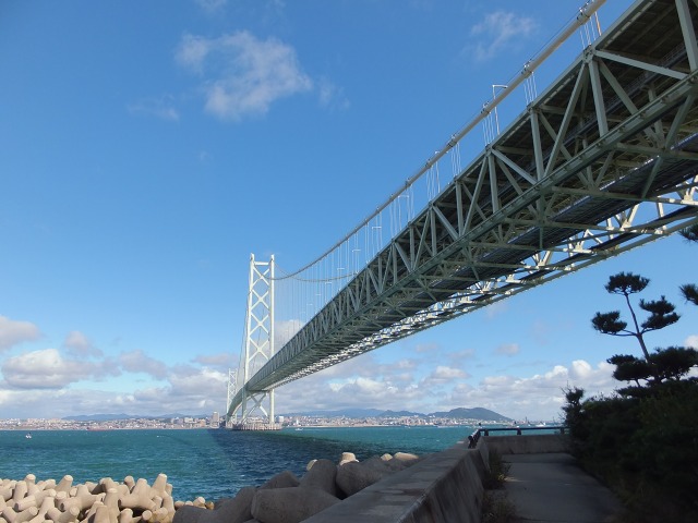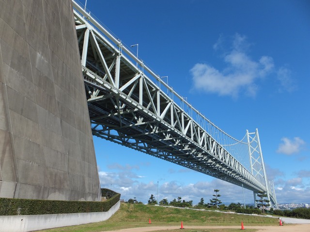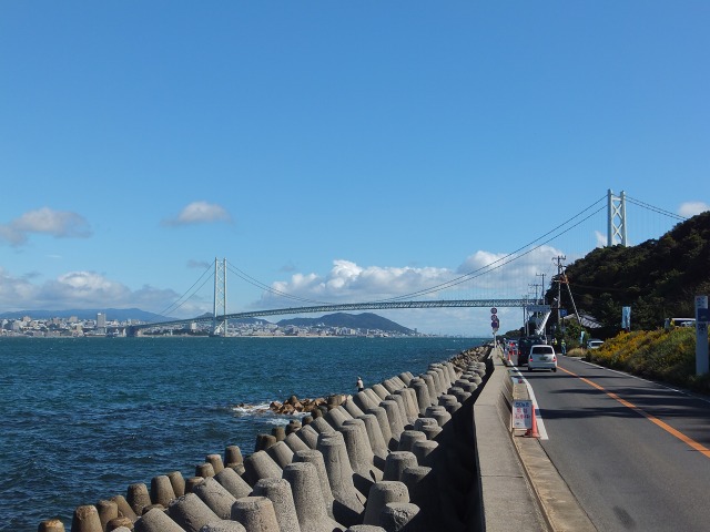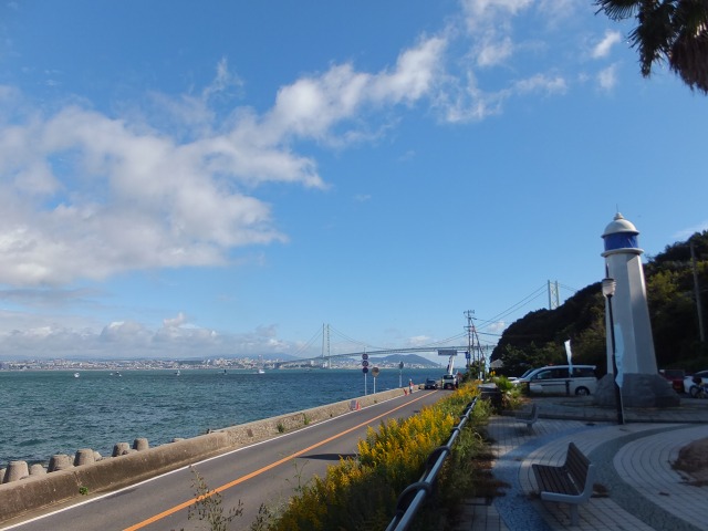 神戸淡路鳴門自動車道 淡路I.Cより県道31号線を北へ行きます。 明石海峡大橋の下をくぐり瀬戸内海側に少し入った場所にあります。 県道は海端を走っている為、灯台は見えません。灯台の形をしたモニュメントが目印です。 |