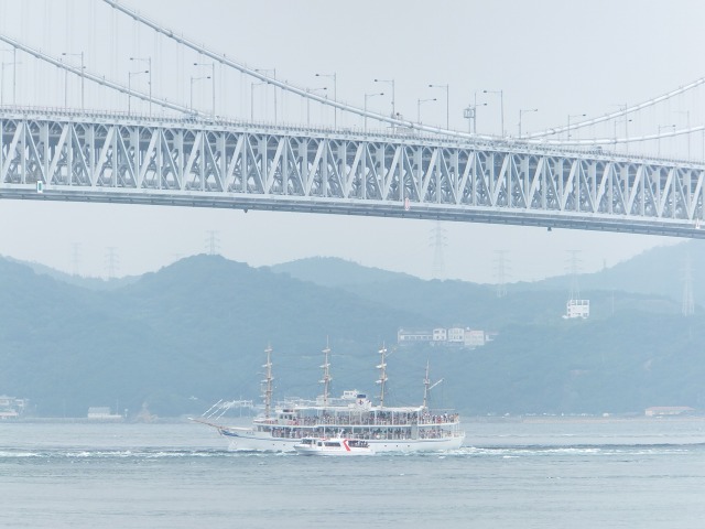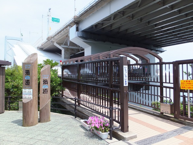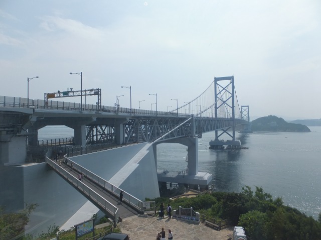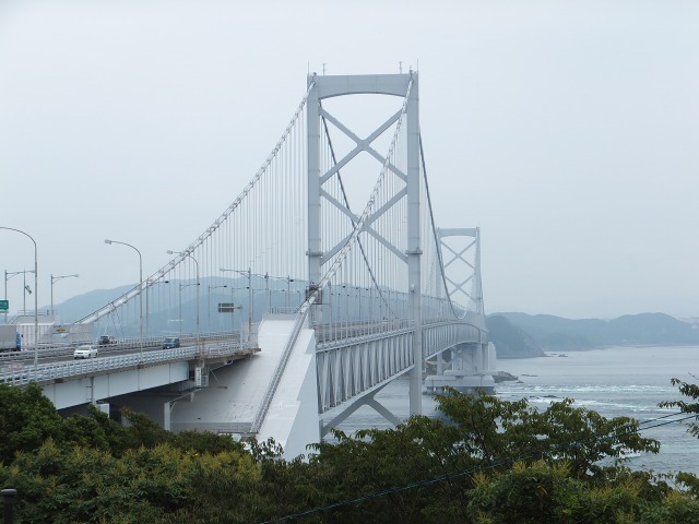 神戸淡路鳴門自動車道の一部です。橋に最も近いI.Cは淡路島側が淡路島南I.C、徳島側が鳴門北I.Cです。 橋上は駐停車路肩走行禁止です。最低速度が50km/hとなっているので渦潮を見ようと減速したりもできません。 橋上に設置されているスピーカから注意されるそうです。 渦の道へは鳴門北I.Cから県道11号線を北上し終点まで行きます。 |