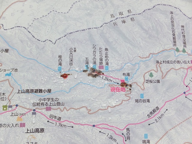 国道9号線から県道262号線に入ります。おもしろ昆虫化石館が目印です。 2kmほど行った所にシワガラの滝と書かれた看板がある道に入ります。 道なりに看板に従って行くと駐車場があります。 |