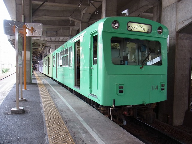 三重県 四日市市内を走る近鉄(近畿日本鉄道)の路線です。 全線単線電化で架線電圧は直流750V、閉塞方式は自動閉塞式で近鉄型ATSを採用、CTCが導入されていて 近鉄四日市駅より制御されています。 有人駅は近鉄四日市と内部のみで、八王子線終着駅の西日野も無人駅となっています。 また、全線ワンマン運転となっています。 全国的にも珍しい特殊狭軌(ナローゲージ)で、線路幅は762mmしかありません。 日本には主に3種類の線路幅があり、新幹線・私鉄線が標準軌で1435mm、JR線・私鉄線が狭軌で 1067mm(一部で1372mm)、三岐鉄道線・黒部峡谷鉄道・近鉄線の一部が特殊狭軌です。 内部線の起点は近鉄四日市駅で、ホームは本線とは別(本線は3階、内部線は1階)になっています。 改札が別になっているので、乗り継ぐ際は一旦改札外に出ないといけません。 八王子線へは直通運転をしているので、内部・西日野行きが交互に出発し途中の日永駅で分かれます。 内部線は1912年(大正元年)より順次開業した三重軌道線の一部で、現在の営業キロは5.7kmです。 駅数は起終点駅含む8駅あります。 八王子線も同時期に開業し、当初は伊勢八王子駅(営業キロ3.0km)までありました。 1974年の集中豪雨で全線が被災し、1976年に日永−西日野間は駅舎を移転し復旧しましたが、 西日野より先は廃止されました。 現在は1駅(1.3km)しかないので数分で終点に到着します。 内部・八王子線は共に大きな問題を抱えていて、廃線の危機に瀕しています。 年々乗降者数が減少し赤字からの脱却が見込めないのと、車両や施設の保守費用が大きな要因です。 特に車両がネックになっていて、現在でも昭和20年代に製造された車両を改修しながら使用しています。 軌間の絡みで他からの流用が出来ず、全て新造しなければなりません。 2012年に近鉄が四日市市に対して内部・八王子線を廃止して軌道を撤去し、舗装してバス専用路線として 運用する方針を打診したそうです。 その1で近鉄四日市駅と車両を、 その2 で内部駅・西日野駅を、 その3 で日永駅を紹介します。 |