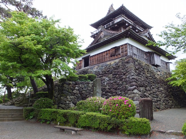 福井県 坂井市にある1576年に築城された城です。重要文化財に指定されています。 日本に現存する12天守の中で最古と言われています。 大入母屋造りの上に回縁勾欄付きの望楼を乗せた初期天守の構造から最古ではないかとされています。 1948年に起きた福井地震で倒壊しましたが、1955年に元の材木を組み直し修復されました。 日本100名城、霞ヶ城公園として日本さくら名所100選に選定されています。 この城は一向一揆の備えとして織田信長の命で柴田勝家の甥である勝豊が築きました。 福井平野にある小高い丘の上に築かれた平山城です。現在は天守閣しか残っていません。 伝説から「霞ヶ城」という別名があります。 園内には400本の桜が植えられており季節になるととても綺麗だそうです。 |