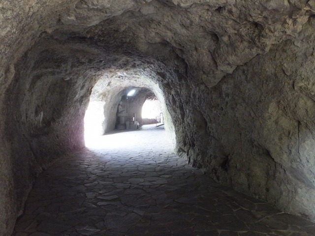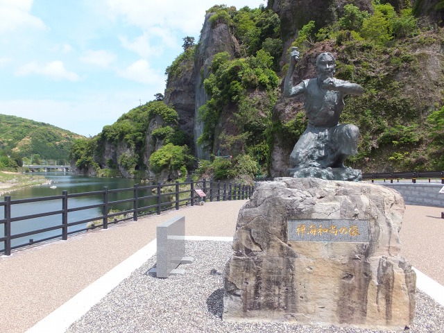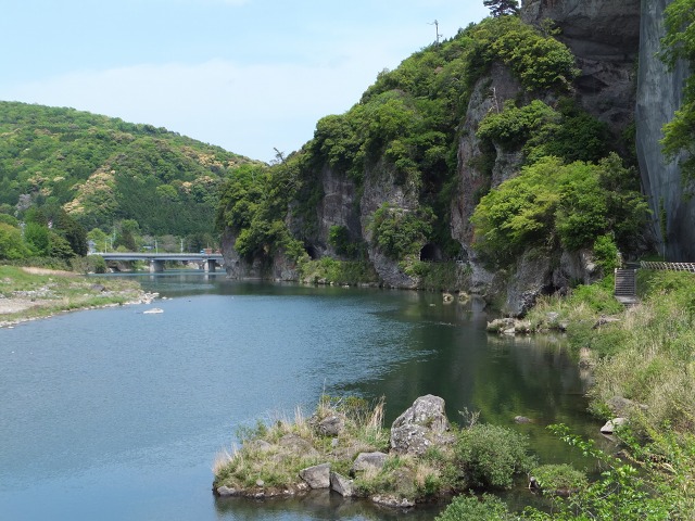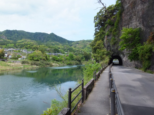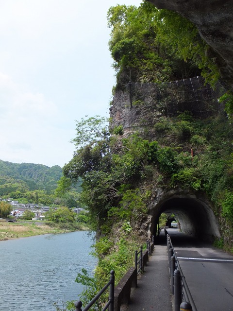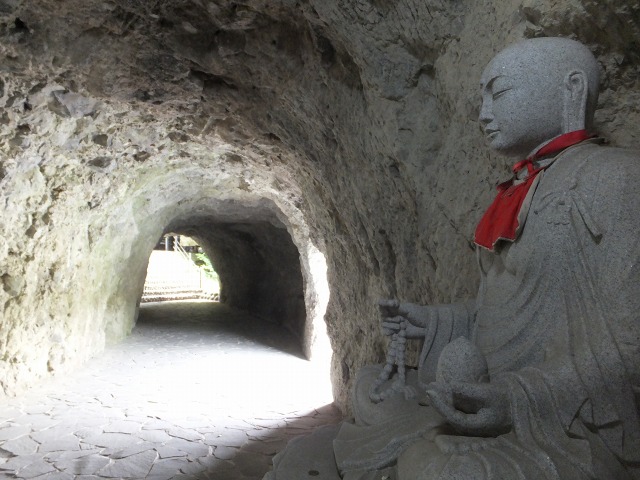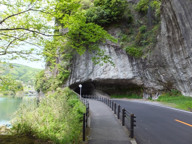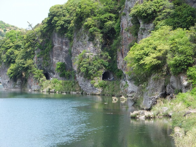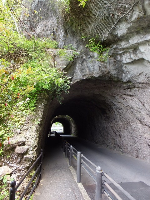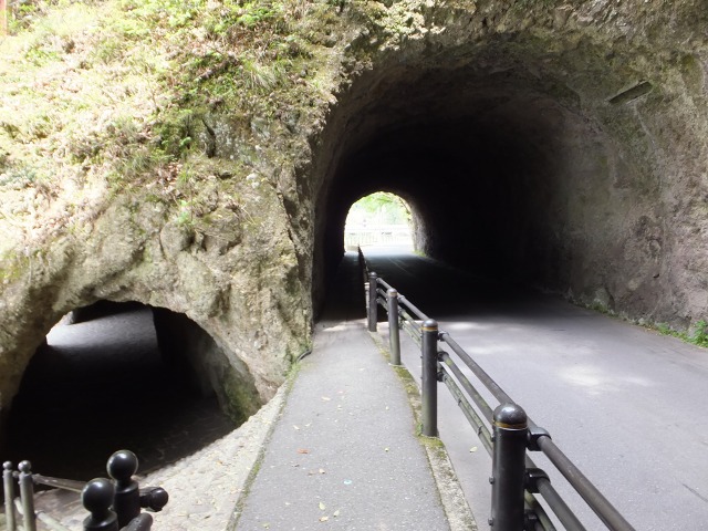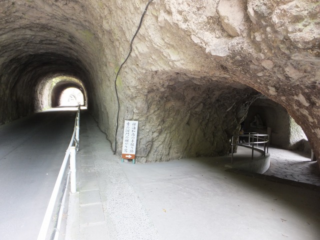 大分県 中津市にある洞門です。 名称で知られる耶馬溪の中にあります。 山国川に面してそそり立つ競秀峰の下部を掘り抜いたトンネルです。 青の洞門の総延長は342mで、そのうち144mがトンネルとなっています。 江戸時代、諸国遍歴の途中にこの地を訪れた禅海和尚が、鎖渡しと呼ばれる難所で命を落とす通行人を見て、 トンネルを掘り安全な道を造ろうと工事に取り掛かり、約30年の歳月をかけ1750年頃に完成させました。 托鉢に回り、その浄財を資金に石工を雇いノミと槌だけで掘り抜いたと言われています。 開通後は人が4文、牛馬は8文の通行料をとっていたそうで、日本最古の有料道路と言われています 明治時代に陸軍の日出台演習所への道路整備の為、拡幅工事が行われ当初の形はかなり失われてしまいました。 明かり採り窓や通路のノミの跡などが当時のまま残っています。 全国的に知られる様になったのは菊池寛の短編小説「恩讐の彼方に」で、この青の洞門がモチーフとして描かれたのと、 1923年の「尋常小学国語読本 巻十二」という教材に史実としての禅海和尚の話が取り上げられ広まりました。 500m下流には耶馬渓橋があります。 |