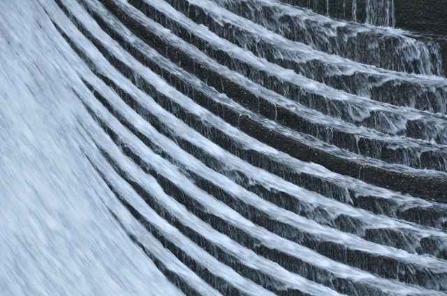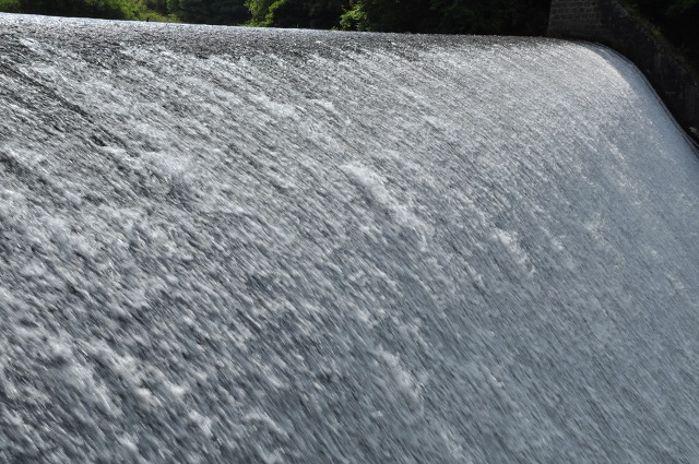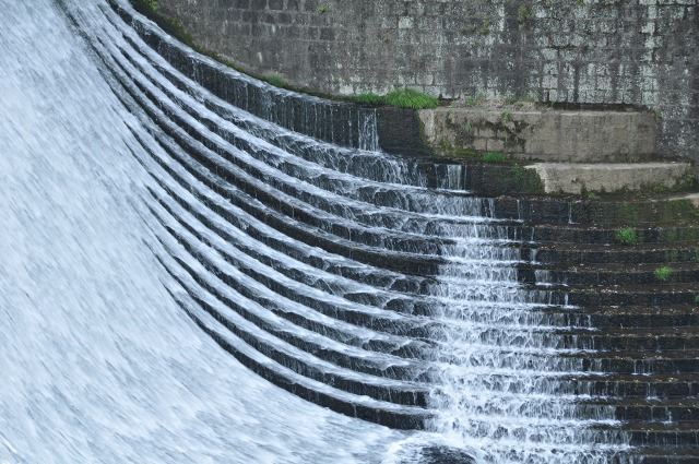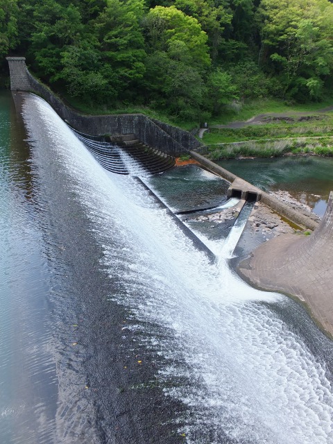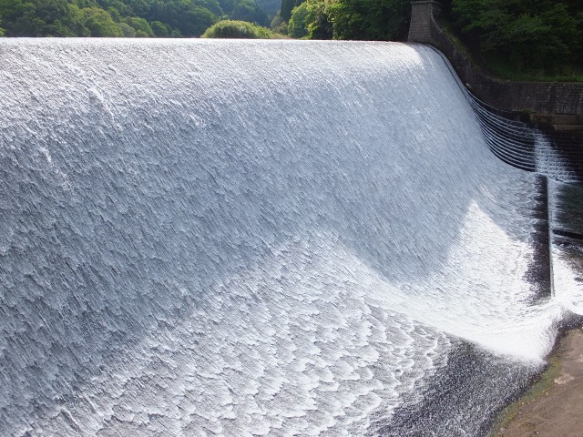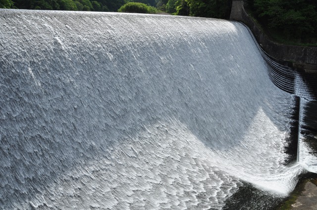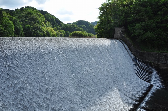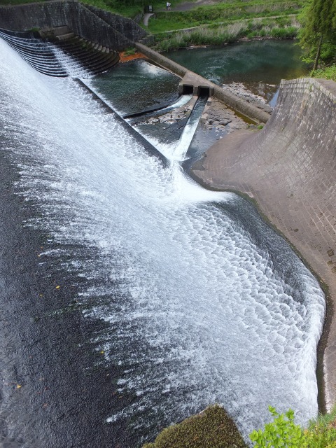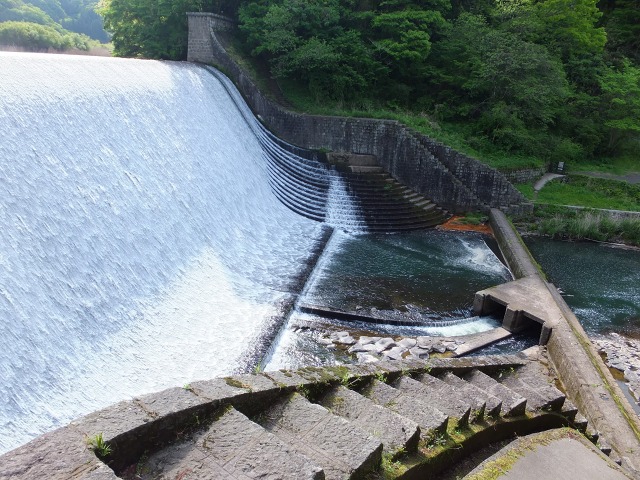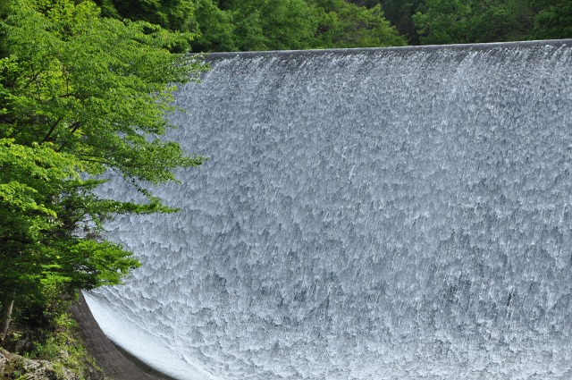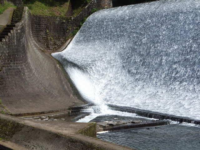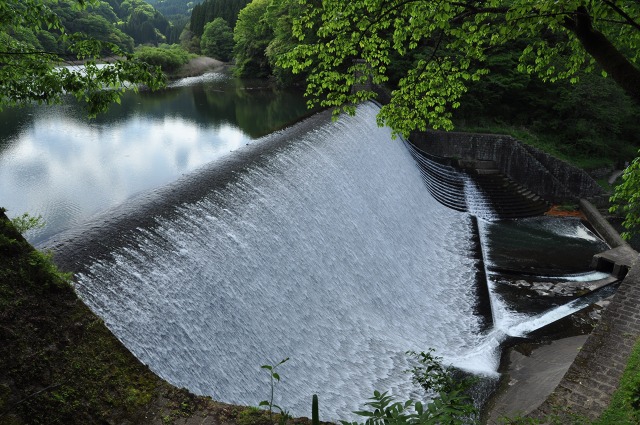 大分県竹田市にある越流式重力式コンクリート・表層石造りの堰堤です。 堤高13.9m、堤長87.26m、総貯水量60万立方メートルの灌漑堰堤です。 大野川より取水する富士緒井路の水不足解消の為、1938年に造られました。 白水ダムのある竹田市は、阿蘇山などの火山に近く地盤が軟弱な為、落水時の衝撃で基礎部分が崩壊しないように、 越流式や両端の流路等の工夫が取られました。 右岸は武者返しの曲面流路、左岸は階段状の流路になっています。 水量が増すと勢いを強める中央の越流を、左右の流路より斜めに水流をぶつけ、水圧を相殺し基礎部分の保護に なるよう設計されています。 水流の美しさから「日本一美しいダム」とよく呼ばれます。 無骨なイメージが多いダムの中で、機能美だけでなく芸術性にも富んだ素晴らしいダムだと思います。 また、秋田県 藤倉ダム、愛知県 長篠堰堤とで「日本三大美堰堤」とも言われています。 「白水ダム」は通称で、正式名称は「白水溜池堰堤」と言います。 河川法では堤高15m以上のものを、「ダム」と定義している為、白水ダムは正式には「ダム」ではありません。 「白水溜池堰堤水利施設」として国の重要文化財に指定されています。 2006年に放送された大分麦焼酎 二階堂のテレビCMに出ています。 二階堂のCMは大分県を中心に九州各地の名所や遺産がよく映りますので、どの場所かじっと見てみるのも いいかもしれません。 |